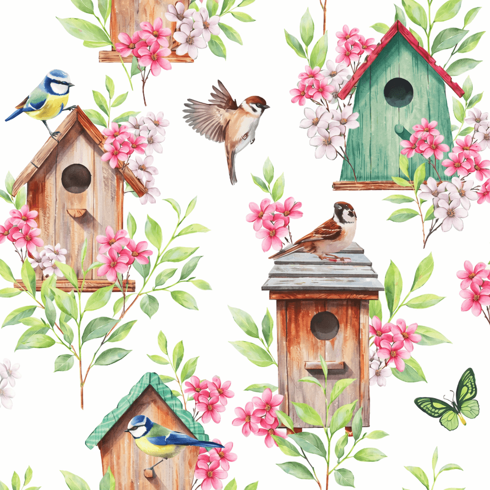 Guardanapos Decoupage 33x33 Bird & Blossom White